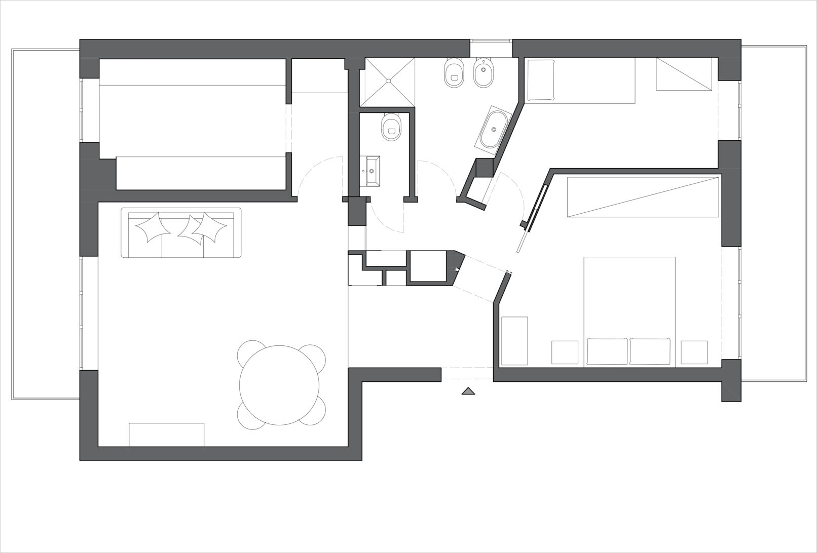 Progetto di ristrutturazione parziale. In Art Design ha pensato ad una nuova distribuzione degli spazi nella zona notte per la creazione di una nuova stanza e due bagni.